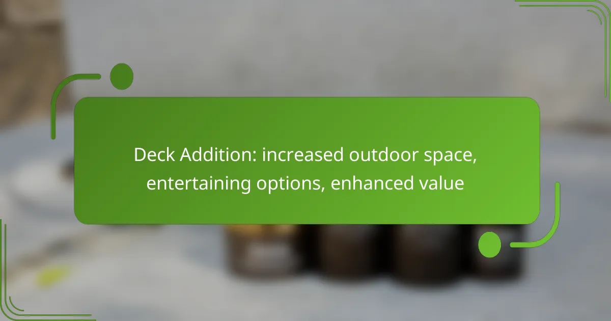 A deck addition can significantly enhance property value by increasing usable outdoor space and improving the overall appeal of a home. Homeowners often see a return on investment, making it a worthwhile consideration for those looking to sell.