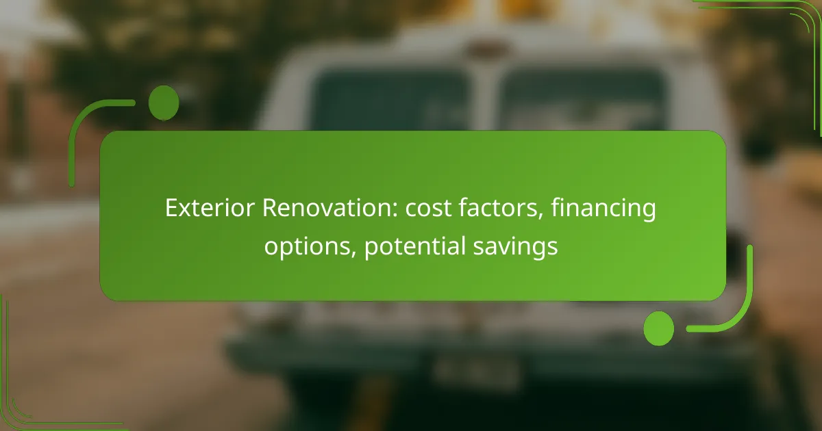 Exterior renovation can be a significant investment for homeowners, influenced by factors such as material quality, labor costs, and project complexity. Understanding financing options like home equity loans and government grants can help manage expenses effectively. Additionally, these renovations can lead to substantial savings through improved energy efficiency and increased property value.